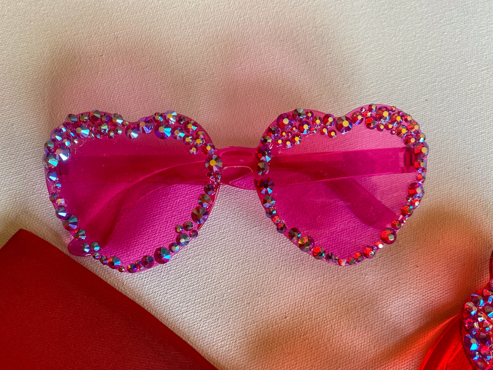Limited Edition Heart Shaped Sunglasses with Clustered, Multi-sized Aurora Borealis Rhinestones.