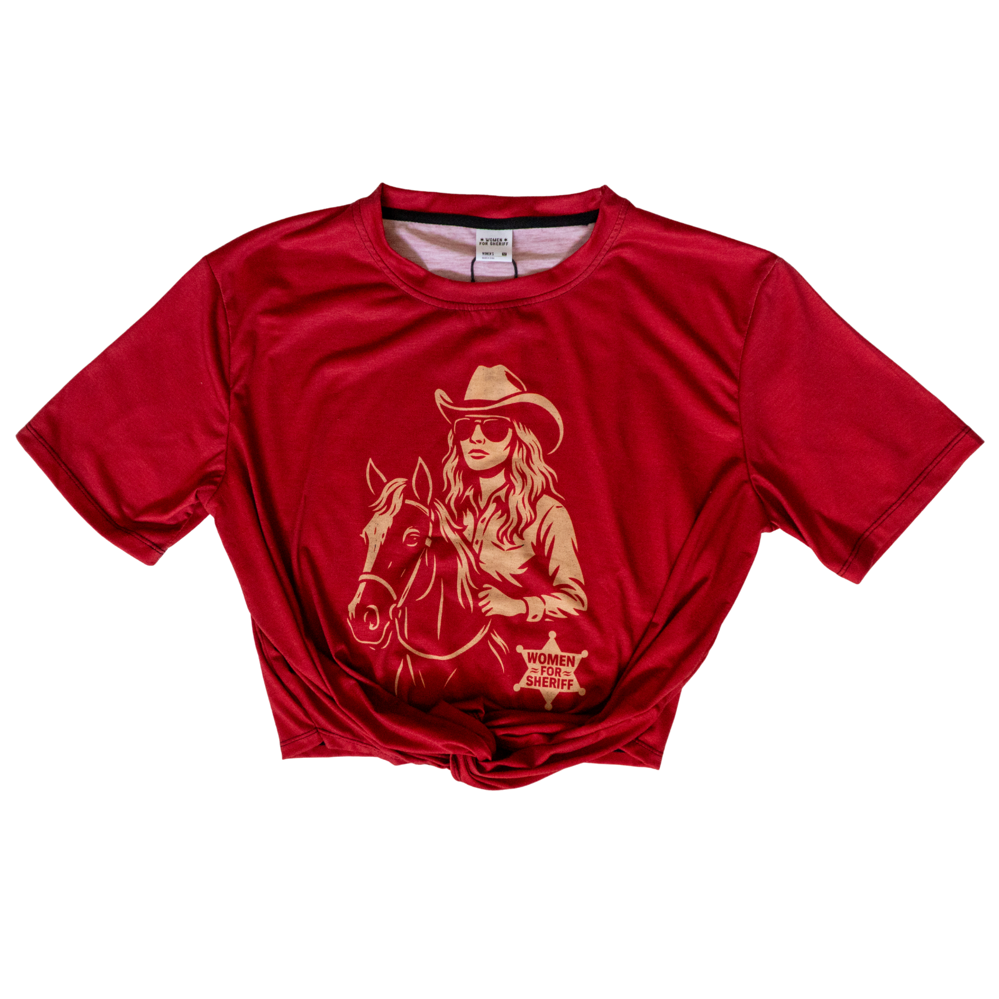 A t-shirt with a twist! Cropped and twist-knotted t-shirt featuring original WFS Patrol Horse artwork.